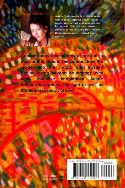 Contemporary love poems of passion to man and to Nature. The poems draw the reader into the magic and mystery behind loving beyond boundaries. With richly inventive imagination Arlene Rabinowitz explores the light as well as the darkest aspects of love. In 'Heat Rising' and 'False Sweetness' speak of yearnings to a loved one. Of passion in 'Caressing Flames' and 'Leopard Man'. 'Complete Detachment' alludes to biblical narrative. Of unrequited love in 'Home'. A period of love condensed into a moment in 'Set Desire' and vivid imagination in 'So Warm'. There are also metaphoric connotations to human emotions seen in animals and birds in 'Dawn', 'Leopard Man' The Arrogance of the Male Leopard' and 'The Eagle'. This is a collection of poems that were written in response to experiencing undying love with all its facets. Exploring and comparing the love for Nature with human love. Of gain and loss, joys bliss and partying, a love that transcends physical boundaries.