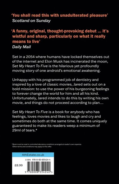 Set in a 2054 where humans have locked themselves out of the internet and Elon Musk has incinerated the moon, Set My Heart To Five is the hilarious yet profoundly moving story of one android's emotional awakening.
