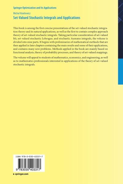 The volume will appeal to students of mathematics, economics, and engineering, as well as to mathematics professionals interested in applications of the theory of set-valued stochastic integrals.