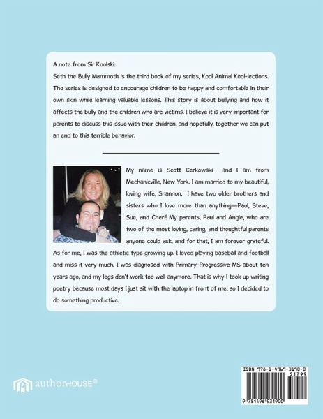A note from Sir Koolski: Seth the Bully Mammoth is the third book of my series, Kool Animal Kool-lections. The series is designed to encourage children to be happy and comfortable in their own skin while learning valuable lessons. This story is about bullying and how it affects the bully and the children who are victims. I believe it is very important for parents to discuss this issue with their children, and hopefully, together we can put an end to this terrible behavior.