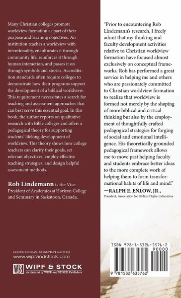 Many Christian colleges promote worldview formation as part of their purpose and learning objectives. An institution teaches a worldview with intentionality, enculturates it through community life, reinforces it through human interaction, and passes it on through symbols and stories. Accreditation standards often require colleges to demonstrate how their programs support the development of a biblical worldview. This requirement necessitates a search for teaching and assessment approaches that can best serve this essential goal. In this book, the author reports on qualitative research with Bible colleges and offers a pedagogical theory for supporting students' lifelong development of worldview. This theory shows how college teachers can clarify their goals, set relevant objectives, employ effective teaching strategies, and design helpful assessment methods.