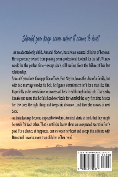 Should you keep score when it comes to love? As an adopted only child, Annabel Norton, has always wanted children of her own. Having recently retired from playing semi-professional football for the AFLW, now would be the perfect time-except she's still reeling from the failure of her last relationship. Special Operations Group police officer, Ben Naylor, loves the idea of a family, but with two marriages under his belt, he figures commitment isn't for a man like him. Especially as he needs time to process all he's lived through in his job. That's why it makes no sense that he falls head over heels for Annabel the very first time he sees her. He does the right thing and keeps his distance...and then she moves in next door. As their feelings become impossible to deny, Annabel starts to think that they might be made for each other. That is until she learns about an unexpected secret in Ben's past. For a chance at happiness, can she open her heart and accept that a future with Ben could involve more than children of her own?