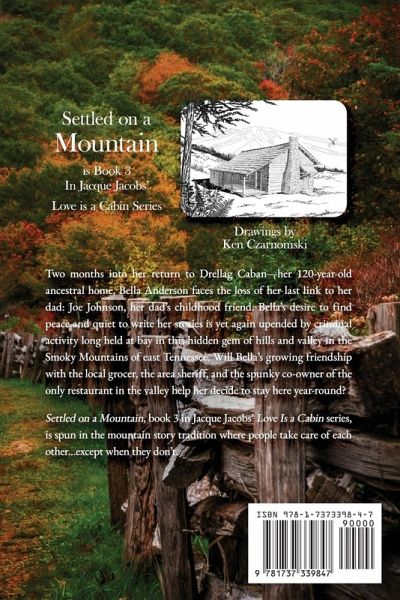 Two months into her return to Drellag Caban-her 120-year-old ancestral home, Bella Anderson faces the loss of her last link to her dad: Joe Johnson, her dad's childhood friend. Bella's desire to find peace and quiet to write her stories is yet again upended by criminal activity long held at bay in this hidden gem of hills and valley in the Smoky Mountains of east Tennessee. Will Bella's growing friendship with the local grocer, the area sheriff, and the spunky co-owner of the only restaurant in the valley help her decide to stay here year-round? Settled on a Mountain, Book 3 in Jacque Jacobs' Love Is a Cabin series, is spun in the mountain story tradition where people take care of each other...except when they don't.