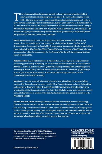 This volume provides a landscape narrative of early hominin evolution, linking conventional material and geographic aspects of the early archaeological record with wider and more elusive social, cognitive and symbolic landscapes. It seeks to move beyond a limiting notion of early hominin culture and behaviour as dictated solely by the environment to present the early hominin world as the outcome of a dynamic dialogue between the physical environment and its perception and habitation by active agents. This international group of contributors presents theoretically informed yet empirically based perspectives on hominin and human landscapes.