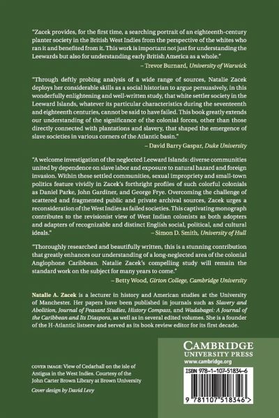 Settler Society in the English Leeward Islands, 1670-1776 is the first study of the history of the federated colony of the Leeward Islands - Antigua, Montserrat, Nevis, and St Kitts - that covers all four islands in the period from their independence from Barbados in 1670 up to the outbreak of the American Revolution, which reshaped the Caribbean. Natalie A. Zacek emphasizes the extent to which the planters of these islands attempted to establish recognizably English societies in tropical islands based on plantation agriculture and African slavery. By examining conflicts relating to ethnicity and religion, controversies regarding sex and social order, and a series of virulent battles over the limits of local and imperial authority, this book depicts these West Indian colonists as skilled improvisers who adapted to an unfamiliar environment, and as individuals as committed as other American colonists to the norms and values of English society, politics, and culture.