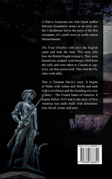 The discovery of a Native American war club in the foundation of the author's childhood home in Massachusetts led her to delve into its history and the people who forged it, resulting in "The Pond Dwellers."This sequel, "Settlers by the Pond," gives a historical account of Tristum Davis, the man who built the home where the club was found and fought for the right to stay. It is a story that begins in Wales with King Arthur and Merlin in the 1600s, tells of the unfathomable struggles the early settlers faced, and ends with a revolution and the ultimate founding of a new country.For those who appreciate the retelling of American history based on years of careful research, this book is for you.
