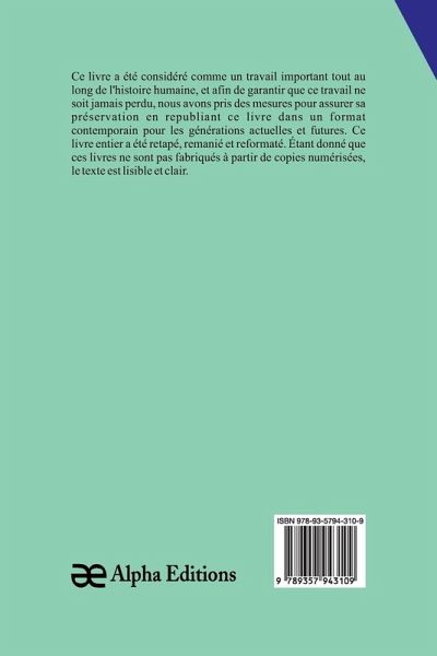 Seul, à travers l'Atlantique, est un livre classique et rare, qui a été considéré comme important tout au long de l'histoire de l'humanité, et pour que cet ouvrage ne soit jamais oublié, chez Alpha Editions, nous avons fait des efforts pour sa préservation en rééditant ce livre dans un format moderne pour les générations présentes et futures. . Tout ce livre a été reformaté, retapé et repensé. Ces livres ne sont pas constitués de copies numérisées de leur ¿uvre originale et leur texte est donc clair et lisible. Ce volume remarquable s'inscrit dans les genres de Geography, Anthropology, Recreation