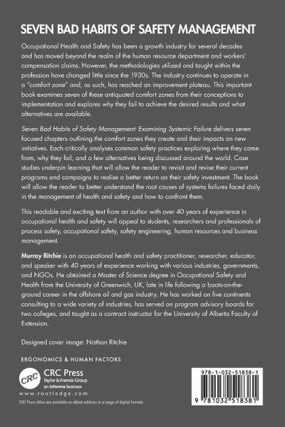 The Seven Bad Habits of Safety Management delivers seven, focused chapters designed to bring occupational health and safety right up to date. Each critically analyzes common safety practices exploring where they came from, why they fail and what alternatives are currently being researched around the world.