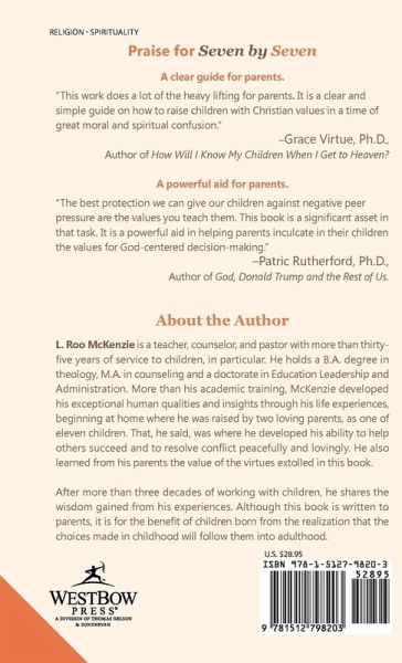 Praise for Seven by Seven A clear guide for parents. This work does a lot of the heavy lifting for parents. It is a clear and simple guide on how to raise children with Christian values in a time of great moral and spiritual confusion. Grace Virtue, Ph.D., Author of How Will I Know My Children When I Get to Heaven? A powerful aid for parents. The best protection we can give our children against negative peer pressure are the values you teach them. This book is a significant asset in that task. It is a powerful aid in helping parents inculcate in their children the values for God-centered decision-making. Patric Rutherford, Ph.D., Author of God, Donald Trump and the Rest of Us.