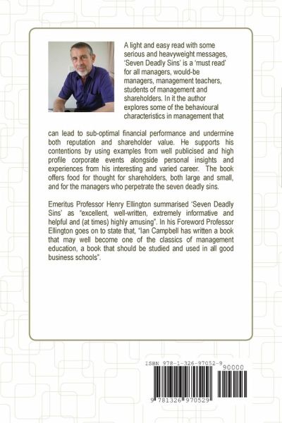 A light and easy read with some serious and heavyweight messages, 'Seven Deadly Sins' is a 'must read' for all managers, would-be managers, management teachers, students of management and shareholders. In it the author explores some of the behavioural characteristics in management that can lead to sub-optimal financial performance and undermine both reputation and shareholder value. He supports his contentions by using examples from well publicised and high profile corporate events alongside personal insights and experiences from his interesting and varied career. The book offers food for thought for shareholders, both large and small, and for the managers who perpetrate the seven deadly sins. Emeritus Professor Henry Ellington summarised 'Seven Deadly Sins' as "excellent, well-written, extremely informative and helpful and (at times) highly amusing".