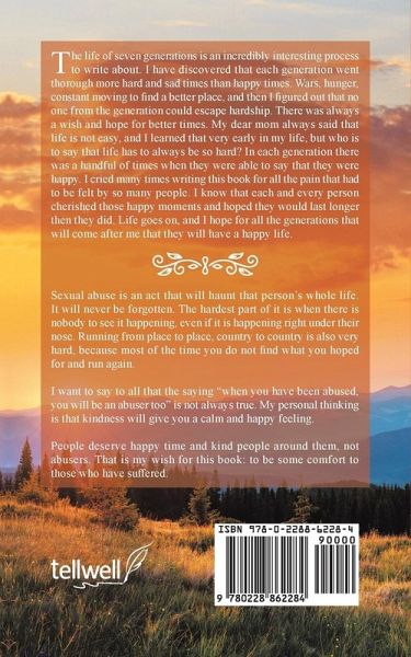 The life of seven generations is an incredibly interesting process to write about. I have discovered that each generation went thorough more hard and sad times than happy times. Wars, hunger, constant moving to find a better place, and then I figured out that no one from the generation could escape hardship. There was always a wish and hope for better times. My dear mom always said that life is not easy, and I learned that very early in my life, but who is to say that life has to always be so hard? In each generation there was a handful of times when they were able to say that they were happy. I cried many times writing this book for all the pain that had to be felt by so many people. I know that each and every person cherished those happy moments and hoped they would last longer then they did. Life goes on, and I hope for all the generations that will come after me that they will have a happy life.