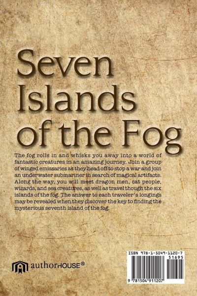 The fog rolls in and whisks you away into a world of fantastic creatures in an amazing journey. Join a group of winged emissaries as they head off to stop a war and join an underwater submariner in search of magical artifacts. Along the way, you will meet dragon men, cat people, wizards, and sea creatures, as well as travel though the six islands of the fog. The answer to each traveler's longings may be revealed when they discover the key to finding the mysterious seventh island of the fog.