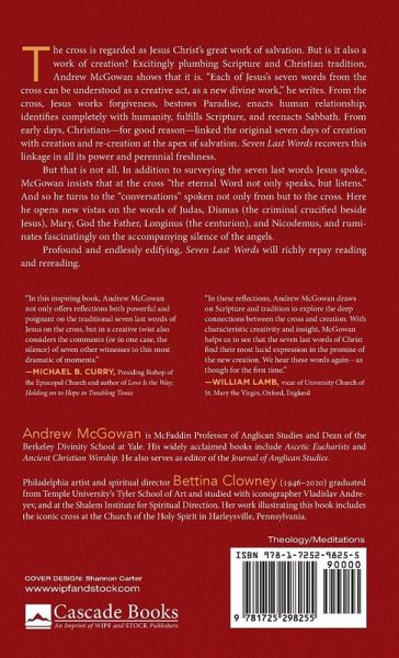 The cross is regarded as Jesus Christ's great work of salvation. But is it also a work of creation? Excitingly plumbing Scripture and Christian tradition, Andrew McGowan shows that it is. ""Each of Jesus's seven words from the cross can be understood as a creative act, as a new divine work,"" he writes. From the cross, Jesus works forgiveness, bestows Paradise, enacts human relationship, identifies completely with humanity, fulfills Scripture, and reenacts Sabbath. From early days, Christians--for good reason--linked the original seven days of creation with creation and re-creation at the apex of salvation. Seven Last Words recovers this linkage in all its power and perennial freshness. But that is not all. In addition to surveying the seven last words Jesus spoke, McGowan insists that at the cross ""the eternal Word not only speaks, but listens."" And so he turns to the ""conversations"" spoken not only from but to the cross. Here he opens new vistas on the words of Judas, Dismas (the criminal crucified beside Jesus), Mary, God the Father, Longinus (the centurion), and Nicodemus, and ruminates fascinatingly on the accompanying silence of the angels. Profound and endlessly edifying, Seven Last Words will richly repay reading and rereading.
