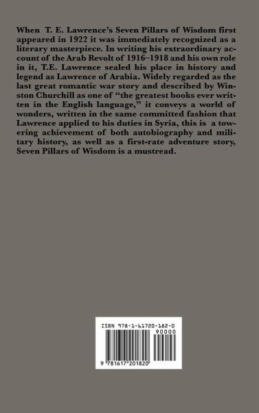 When T. E. Lawrence's Seven Pillars of Wisdom first appeared in 1922 it was immediately recognized as a literary masterpiece. In writing his extraordinary account of the Arab Revolt of 1916-1918 and his own role in it, T.E. Lawrence sealed his place in history and legend as Lawrence of Arabia. Widely regarded as the last great romantic war story and described by Winston Churchill as one of "the greatest books ever written in the English language," it conveys a world of wonders, written in the same committed fashion that Lawrence applied to his duties in Syria, this is a towering achievement of both autobiography and military history, as well as a first-rate adventure story, Seven Pillars of Wisdom is a must read.Wilder Publications is a green publisher. All of our books are printed to order. This reduces waste and helps us keep prices low while greatly reducing our impact on the environment.