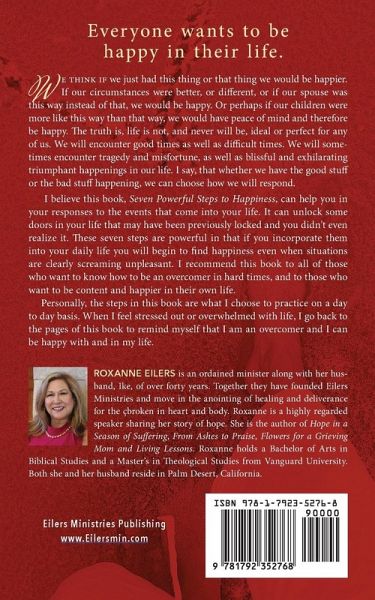 Everyone wants to be happy in their life. We think if we just had this thing or that thing we would be happier. If our circumstances were better, or different, or if our spouse was this way instead of that, we would be happy. Or perhaps if our children were more like this way than that way, we would have peace of mind and therefore be happy. The truth is, life is not, and never will be, ideal or perfect for any of us. We will encounter good times as well as difficult times. We will sometimes encounter tragedy and misfortune, as well as blissful and exhilarating triumphant happenings in our life. I say, that whether we have the good stuff or the bad stuff happening, we can choose how we will respond. I believe this book, Seven Powerful Steps to Happiness, can help you in your responses to the events that come into your life. It can unlock some doors in your life that may have been previously locked and you didn't even realize it. These seven steps are powerful in that if you incorporate them into your daily life you will begin to find happiness even when situations are clearly screaming unpleasant. I recommend this book to all of those who want to know how to be an overcomer in hard times, and to those who want to be content and happier in their own life. Personally, the steps in this book are what I choose to practice on a day to day basis. When I feel stressed out or overwhelmed with life, I go back to the pages of this book to remind myself that I am an overcomer and I can be happy with and in my life.