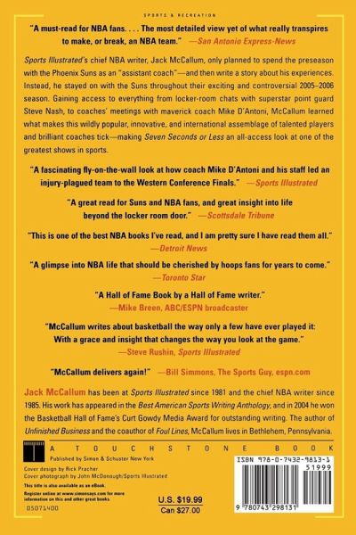 Sports Illustrated's chief NBA writer, Jack McCallum, only planned to spend the preseason with the Phoenix Suns as an "assistant coach" -- and then write a story about his experiences. Instead, he stayed on with the Suns throughout their exciting and controversial 2005-2006 season. Gaining access to everything from locker-room chats with superstar point guard Steve Nash, to coaches' meetings with maverick coach Mike D'Antoni, McCallum learned what makes this wildly popular, innovative, and international assemblage of talented players and brilliant coaches tick -- making Seven Seconds or Less an all-access look at one of the greatest shows in sports.