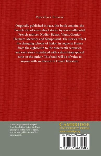 Originally published in 1923, this book contains the French text of seven short stories by seven influential French authors: Nodier, Balzac, Vigny, Gautier, Flaubert, Mérimée and Maupassant. The stories reflect the changing schools of fiction in vogue in France from the eighteenth to the nineteenth centuries, and each story is prefaced with a short biographical note on the author. This book will be of value to anyone with an interest in French literature.