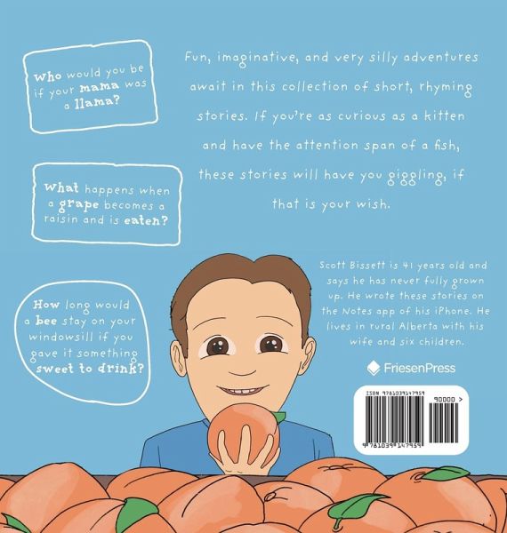 Who would you be if your mama was a llama? What happens when a grape becomes a raisin and is eaten? How long would a bee stay on your windowsill if you gave it something sweet to drink? Fun, imaginative, and very silly adventures await in this collection of short, rhyming stories. If you're as curious as a kitten and have the attention span of a fish, these stories will have you giggling, if that is your wish.