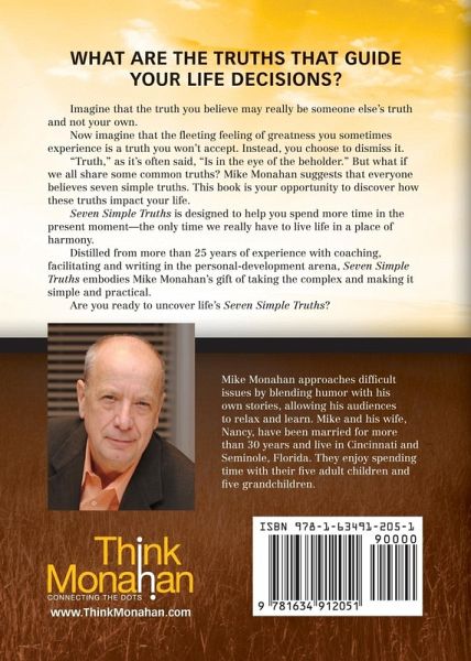 By reading Seven Simple Truths, you will be able to view your life from a different perspective. Some of the most important areas of life are not taught about in school or communicated clearly by parents. Many beliefs about what will make us happy, successful and loved are misdirected at their core. Through his wit, wisdom and insight, bestselling author Mike Monahan offers readers a fresh look at how to live a happier life.