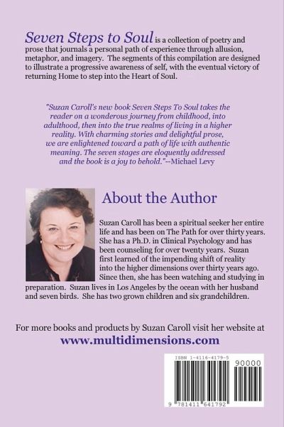 Seven Steps to Soul is a collection of poetry and prose that journals a personal path of experience through allusion, metaphor, and imagery. The segments of this compilation are designed to illustrate a progressive awareness of self, with the eventual victory of returning Home to step into the Heart of Soul.