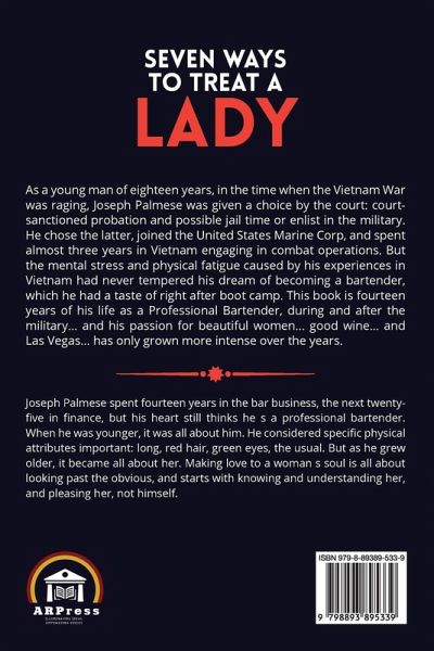 As a young man of eighteen years, in the time when the Vietnam War was raging, Joseph Palmese was given a choice by the court: court-sanctioned probation and possible jail time or enlist in the military. He chose the latter, joined the United States Marine Corp, and spent almost three years in Vietnam engaging in combat operations. But the mental stress and physical fatigue caused by his experiences in Vietnam had never tempered his dream of becoming a bartender, which he had a taste of right after boot camp. This book is fourteen years of his life as a Professional Bartender, during and after the military... and his passion for beautiful women... good wine... and Las Vegas... has only grown more intense over the years.