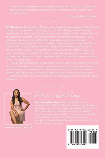 As little girls, we all have dreams of how our lives should go. From visions of meeting prince charming, being swept off of our feet, getting married, and riding off into the sunset to experiencing the bliss of happily ever after, these are the makings of what we believe to be a beautiful life. Far too often, our hopes and dreams are shattered. And as the story of life unfolds, we may find ourselves attempting to navigate a maze of tears, lies, and disappointments of people who we once believed to be instruments of happiness. There are even times when we may fall asleep in a mystical romantic coma, unconscious and unaware of what is right or wrong, amidst a whirlwind of what we thought was love. This maze of entanglement could be your reality, until the day that you awaken and become attuned to love that even you weren't expecting. Love in its purest form was your destiny all along, if only you believe. Through captivating storytelling, Leah Pump takes you along for an intimate journey. Her quest to leave the table when love was no longer being served and to rediscover the greatest love of all inspires us to bear witness to the mistakes, missteps, men, and the myriad of circumstances experienced that ultimately prepared her for the abundance of blessings. Discover truth that moves you to tears and ignites your applause as you enter the pages of "Seven".