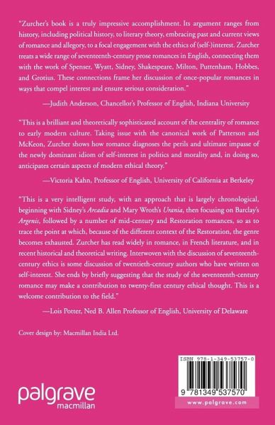 "Zurcher's book is a truly impressive accomplishment. Its argument ranges from history, including political history, to literary theory, embracing past and current views of romance and allegory, to a focal engagement with the ethics of (self-)interest.Zurcher treats a wide range of seventeenth-century prose romances in English, connecting them with the work of Spenser, Wyatt, Sidney, Shakespeare, Milton, Puttenham, Hobbes, and Grotius. These connections frame her discussion of once-popular romances in ways that compel interest and ensure serious consideration." - Judith Anderson, Chancellor's Professor of English, Indiana University