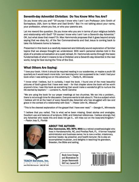 Do you know who you are? "Of course I know who I am! I am Professor John Smith of Someplace, USA, born to Bob and Patty Smith." But I'm not talking about your name, your profession, where you live, or who your parents are. Let me reword the question. Do you know who you are in terms of your religious beliefs and relationship with God? "Of course I know who I am! I am a Seventh-day Adventist." OK, but what does that mean? Dr. Max Hammonds proposes that it goes beyond simply saying that we obey ALL of the Ten Commandments and that Jesus is coming back to take His followers home to heaven. Presented in this book is a carefully reasoned and biblically sound exploration of familiar topics that we always thought we understood. With warm personal stories told in the style of a private conversation at a quiet retreat, Dr. Hammonds works through the basic fundamentals of what it means to be a Christian and a Seventh-day Adventist in the real world, living for God during the Time of the End. This is not just another book about Adventist doctrines. This book gets at the heart of Christianity while focusing on the special calling we have as Adventists.