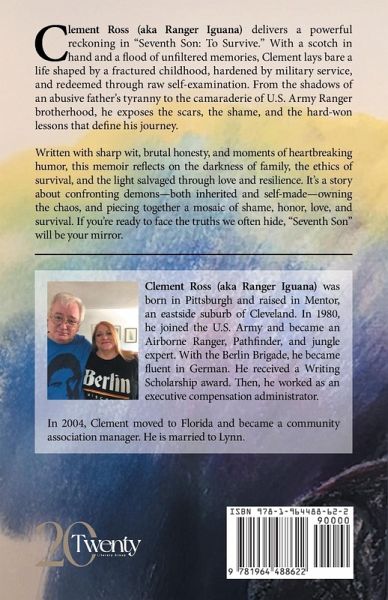 Ranger Iguana delivers a powerful reckoning in "Seventh Son: To Survive." With a scotch in hand and a flood of unfiltered memories, Ranger Iguana lays bare a life shaped by a fractured childhood, hardened by military service, and redeemed through raw self-examination. From the shadows of an abusive father's tyranny to the camaraderie of U.S. Army Ranger brotherhood, he exposes the scars, the shame, and the hard-won lessons that define his journey. Written with sharp wit, brutal honesty, and moments of heartbreaking humor, this memoir reflects on the darkness of family, the ethics of survival, and the light salvaged through love and resilience. It's a story about confronting demons-both inherited and self-made-owning the chaos, and piecing together a mosaic of shame, honor, love, and survival. If you're ready to face the truths we often hide, "Seventh Son" will be your mirror. Ranger Iguana was born in Pittsburgh and raised in Mentor, an eastside suburb of Cleveland. In 1980, he joined the U.S. Army and became an Airborne Ranger, Pathfinder, and jungle expert. With the Berlin Brigade, he became fluent in German. He received a Writing Scholarship award. Then, he worked as an executive compensation administrator. In 2004, Ranger Iguana moved to Florida and became a community association manager. He is married to Lynn.
