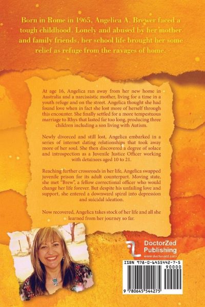 At age 16, Angelica ran away from her new home in Australia and a narcissistic mother, living for a time in a youth refuge and on the street. Angelica thought she had found love when in fact she lost more of herself through this encounter. She finally settled for a more tempestuous marriage to Rhys that lasted far too long, producing three children including a son living with Autism. Newly divorced and still lost, Angelica embarked on a series of internet dating relationships that took away more of her soul. She then discovered a degree of solace and introspection as a Juvenile Justice Officer working with detainees aged 10 to 21. Reaching further crossroads in her life, Angelica swapped juvenile prison for its adult counterpart. Moving state, she met "Brew", a fellow correctional officer who would change her life forever. But despite his unfailing love and support, she entered a downward spiral into depression and suicidal ideation. Now recovered, Angelica takes stock of her life and all she learned from her journey so far.