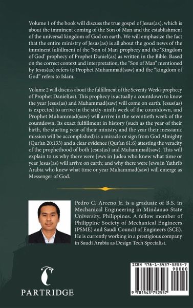 Volume 1 of the book will discuss the true gospel of Jesus(as), which is about the imminent coming of the Son of Man and the establishment of the universal kingdom of God on earth. We will emphasize the fact that the entire ministry of Jesus(as) is all about the good news of the imminent fulfillment of the 'Son of Man' prophecy and the 'Kingdom of God' prophecy of Prophet Daniel(as) as written in the Bible. Based on the correct context and interpretation, the "Son of Man" mentioned by Jesus(as) refers to Prophet Muhammad(saw) and the "kingdom of God" refers to Islam. Volume 2 will discuss about the fulfillment of the Seventy Weeks prophecy of Prophet Daniel(as). This prophecy is actually a countdown to know the year Jesus(as) and Muhammad(saw) will come on earth. Jesus(as) is expected to arrive in the sixty-ninth week of the countdown, and Prophet Muhammad(saw) will arrive in the seventieth week of the countdown. Its exact fulfillment in history (such as the year of their birth, the starting year of their ministry and the year their messianic mission will be accomplished) is a miracle or sign from God Almighty (Qur'an 20:133) and a clear evidence (Qur'an 61:6) attesting the veracity of the prophethood of both Jesus(as) and Muhammad(saw). This will explain to us why there were Jews in Judea who knew what time or year Jesus(as) will arrive on earth; and why there were Jews in Yathrib Arabia who knew what time or year Muhammad(saw) will emerge as Messenger of God.