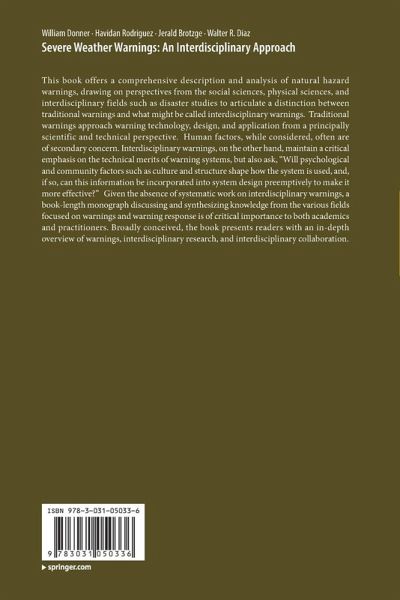 This book offers a comprehensive description and analysis of natural hazard warnings, drawing on perspectives from the social sciences, physical sciences, and interdisciplinary fields such as disaster studies to articulate a distinction between traditional warnings and what might be called interdisciplinary warnings. Traditional warnings approach warning technology, design, and application from a principally scientific and technical perspective. Human factors, while considered, often are of secondary concern. Interdisciplinary warnings, on the other hand, maintain a critical emphasis on the technical merits of warning systems, but also ask, "Will psychological and community factors such as culture and structure shape how the system is used, and, if so, can this information be incorporated into system design preemptively to make it more effective?" Given the absence of systematic work on interdisciplinary warnings, a book-length monograph discussing and synthesizing knowledge from the various fields focused on warnings and warning response is of critical importance to both academics and practitioners. Broadly conceived, the book presents readers with an in-depth overview of warnings, interdisciplinary research, and interdisciplinary collaboration.