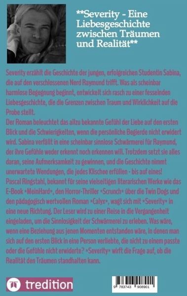 #4 [s ver ti] Severity ist nur EINE Liebesgeschichte: Hat es nicht jeder schon einmal erlebt? Etwas wie Liebe auf den ersten Blick? Ein Gefühl, als würde man den anderen schon bis in das kleinste Detail kennen? Man möchte nur noch mit dem anderen zusammen sein? Die Schwierigkeit ist nur, wenn die Person der persönlichen Begierde einen überhaupt nicht kennt oder kennenlernen will! So endet es dann in einer ewigen sinnlosen Schwärmerei, die zwar irgendwann verblasst, aber immer wieder die Frage aufwirft: "Was wäre, wenn..."So ergeht es Sabina, einer jungen, gutaussehenden, erfolgreichen und beliebten Studentin. Ihr erster Tag an der neuen Universität und sie begegnet Raymund. Er ist ein niedlicher, eigensinniger und verschlossener Nerd. Die Faszination über ihn lässt sie jeden klaren und logischen Gedanken vergessen. Nur: Raymund interessiert sich nicht für sie. Aber Sabina setzt alles daran, dies zu ändern, und es bleibt schließlich nicht bei einer sinnlosen Schwärmerei. Jedoch kommt es immer anders, als man es sich in seinen Träumen erhofft... und jedes Klischee wird erfüllt.Dies ist das 4. Buch von Pascal Ringstahl: Nach dem reinen E-Book MeinHard, dem Horror-Thriller Scrunch über die Twin Dogs und dem pädagogisch wertvollen Roman Calyx begibt er sich nun mit Severity auf einen anderen Weg: in die Sinnlosigkeit der Schwärmerei. Erleben auch Sie die Reise in eine Vergangenheit, als man plötzlich auf den ersten Blick in eine Person verliebt war, die in Wirklichkeit nicht zu einem passte oder die entgegengebrachten Gefühle nicht erwiderte. Doch was wäre passiert, wenn sich daraus doch eine Beziehung entwickelt hätte?