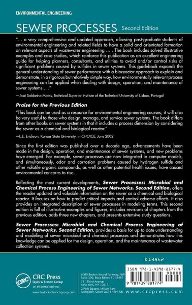 Sewer Systems and Processes. In-Sewer Chemical and Physicochemical Processes. Sewer Atmosphere: Odor and Air-Water Equilibrium and Dynamics. Aerobic and Anoxic Sewer Processes: Transformations of Organic Carbon, Sulfur, and Nitrogen. Anaerobic Sewer Processes: Hydrogen Sulfide and Organic Matter Transformations. Sewer Processes and Mitigation: Water and Gas Phase Control Methods. Sewer Process Modeling: Concepts and Quality Assessment. WATS: A Sewer Process Model for Water, Biofilm, and Gas Phase Transformations. Methods for Sewer Process Studies and Model Calibration. Applications: Sewer Process Design and Perspectives. Appendix A: Units and Nomenclature. Appendix B: Definitions and Glossary. Appendix C: Acronyms. Index