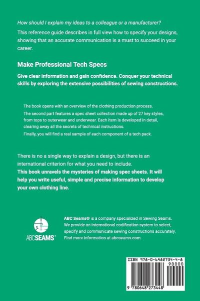 What is inside a Tech Pack and how should I explain my designs? Sewing Seams for Tech Packs is a reference book that focuses on the technical aspects of fashion design. This tool will allow you to not only understand how garments are made, but also how to enrich your skills as a designer. The 27 garment pieces that are developed within this book, are the basis to explain almost any design. We show you in detail how each garment is done, and how to explain it clearly to a factory. By referring to this book when making your tech packs you will save time and avoid misunderstandings. Design like a pro Choose the most appropriate seams for any project, and master the technical issues that are involved in developing garments.