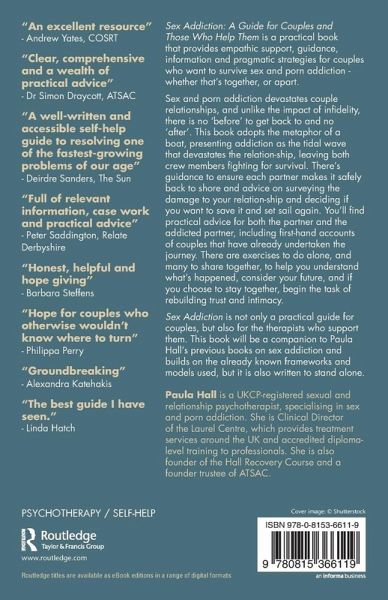 "I highly recommend this book for couples whose lives are being affected by sex addiction, not to mention clinicians working in the field. As with Paula Hall's other publications, it is clear, comprehensive, and keeps the needs of the reader in mind at all times. Not only does the book provide insight, it also offers a wealth of practical advice, getting down to the detail where it's most helpful. The author makes excellent use of real-life, client stories. This not only offers first-hand understanding of what it's like for couples to be caught up in sex addiction, but offers hope that things can and do get better. Paula Hall is a leading authority on sex addiction. This comes across in the book, making it an important and up-to-date addition to resources already available." - Dr Simon Draycott, Chartered Counselling Psychologist. Chair of the ATSAC (Association for the Treatment of Sexual Addiction and Compulsivity)