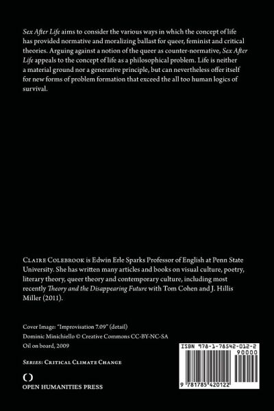 Sex After Life aims to consider the various ways in which the concept of life has provided normative and moralizing ballast for queer, feminist and critical theories. Arguing against a notion of the queer as counter-normative, Sex After Life appeals to the concept of life as a philosophical problem. Life is neither a material ground nor a generative principle, but can nevertheless offer itself for new forms of problem formation that exceed the all too human logics of survival.