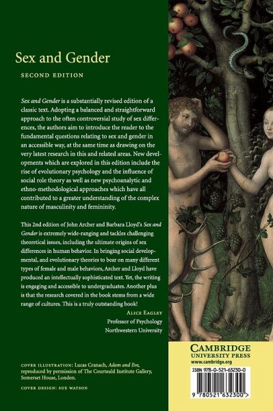 "This second edition of John Archer and Barbara Lloydas Sex and Gender is extremely wide-ranging and tackles challenging theoretical issues, including the ultimate origins of sex differences in human behavior. In bringing social, developmental, and evolutionary theories to bear on many different types of female and male behaviors, Archer and Lloyd have produced an intellectually sophisticated text. Yet, the writing is engaging and accessible to undergraduates. Another plus is that the research covered in the book stems from a wide range of cultures. This is a truly outstanding book!" Alice Eagly, Professor of Psychology, Northwestern University