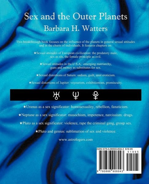 This breakthrough book focuses on the influence of the planets in general sexual attitudes and in the charts of individuals. It features chapters on: Sexual attitudes of European civilization: the predatory male,sex as sin, the female principle as evil. Sexual attitudes in the U.S.A.: emerging matriarchy, guns and money as substitutes for sex. Sexual distortions of Saturn: sadism, guilt, anal eroticism. Sexual distortions of Jupiter: voyeurism, exhibitionism, promiscuity. Uranus as a sex significator: homosexuality, rebellion, fanaticism. Neptune as a sex significator: masochism, impotence, narcissism. drugs. Pluto as a sex significator: violence, rape the criminal gang, group sex. Pluto and genius: sublimation of sex and violence.