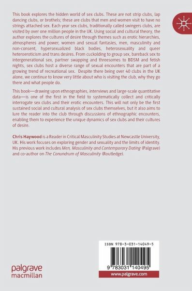 Thisbook-drawing upon ethnographies, interviews and large-scale quantitative data-is one of the first in the field to systematically collect and critically interrogate sex clubs and their erotic encounters. This will not only be the first sustained social and cultural analysis of sex clubs themselves, but it also aims to lure the reader into the club through discussions of ethnographic encounters, enabling them to experience the unique dynamics of sex clubs and their cultures of desire.