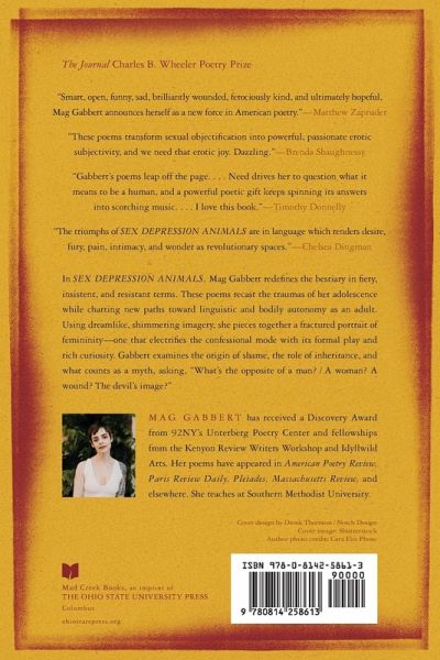 "This bewitching debut delivers everything the title promises and more." -Electric Literature In SEX DEPRESSION ANIMALS, Mag Gabbert redefines the bestiary in fiery, insistent, and resistant terms. These poems recast the traumas of her adolescence while charting new paths toward linguistic and bodily autonomy as an adult. Using dreamlike, shimmering imagery, she pieces together a fractured portrait of femininity-one that electrifies the confessional mode with its formal play and rich curiosity. Gabbert examines the origin of shame, the role of inheritance, and what counts as a myth, asking, "What's the opposite of a man? / A woman? A wound? The devil's image?"