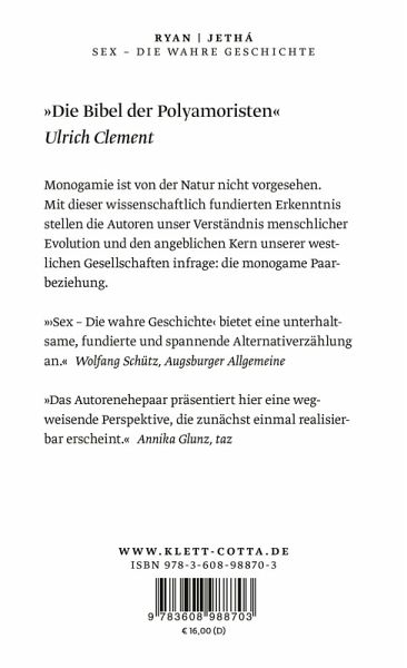 Dieses Buch stellt so ziemlich alles infrage, was wir bislang über Partnerschaft, Ehe und Gesellschaft geglaubt haben. Die beiden Autoren untersuchen die prähistorischen Wurzeln der menschlichen Sexualität und hinterfragen, welches Sexual- und Paarungsverhalten das natürliche ist. Die Veranlagung zur Monogamie, die Darwin und nach ihm viele Evolutionsbiologen konstatierten, ist eine krasse Fehlinterpretation. Die Autoren greifen die Wurzeln unseres Verständnisses von Ehe, Partnerschaft und Gesellschaft an und argumentieren damit gegen eine ganze Zunft, die Monogamie als genetische anthropologische Konstante betrachtet.