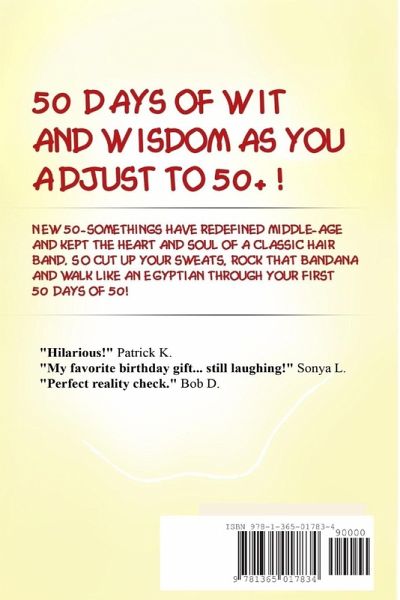 50 days of birthday wit and wisdom as you adjust to being 50. New 50 somethings have redefined middle age and kept the heart and soul of a classic hair band! So cut up your sweats, rock that bandana and walk like an Egyptian through your 50th birthday. The perfect gift for anyone turning 50 or 50 something. Looking at life through the sarcastic, cynical eyes of Generation X: The Mullet! 50 is the new 30, Caddy Shack, Erectile Dysfunction, The Breakfast Club, the blue pill, the pink pill, Smoking Hot 51 year old Bond Girl, Mall Bangs, Occasional Leakage, sex at 50, and more.