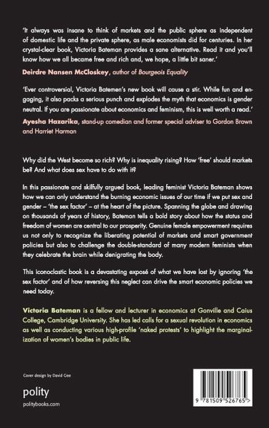 In this passionate and skilfully argued book, leading feminist Victoria Bateman shows how we can only understand the burning economic issues of our time if we put sex and gender - 'the sex factor' - at the heart of the picture. Spanning the globe and drawing on thousands of years of history, Bateman tells a bold story about how the status and freedom of women are central to our prosperity. Genuine female empowerment requires us not only to recognize the liberating potential of markets and smart government policies but also to challenge the double-standard of many modern feminists when they celebrate the brain while denigrating the body.