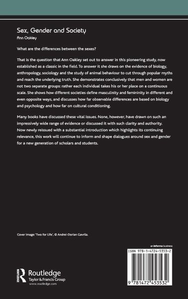 What are the differences between the sexes? That is the question that Ann Oakley set out to answer in this pioneering study, now established as a classic in the field. Now newly reissued with a substantial introduction which highlights its continuing relevance, this work will continue to inform and shape dialogues around sex and gender for a new generation of scholars and students.