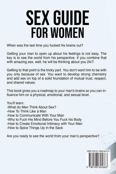 When was the last time you fucked his brains out? Getting your man to open up about his feelings is not easy. The key is to see the world from his perspective. If you combine that with amazing sex, well, he will be thinking about you 24/7. Getting to that point is the tricky part. You don't want him to be with you only because of sex. You want to develop strong chemistry and add sex on top of a solid foundation of mutual trust, respect, and shared values. This book gives you a roadmap to your man's brains so you can influence him on a physical, emotional, and sexual level. You'll learn: What do Men Think About Sex?How To Think Like a Man How to Communicate With Your Man Why to Fuck His Mind Before You Fuck his Body How to Create Emotional Intimacy with Your Man How to Spice Things Up In the Sack Are you ready to see the world from your man's perspective?