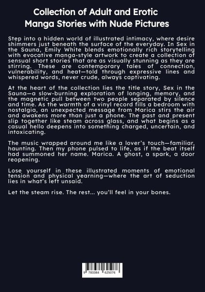 Step into a hidden world of illustrated intimacy, where desire shimmers just beneath the surface of the everyday. In Sex in the Sauna, Emily White blends emotionally rich storytelling with evocative manga-style artwork to create a collection of sensual short stories that are as visually stunning as they are stirring. These are contemporary tales of connection, vulnerability, and heat-told through expressive lines and whispered words, never crude, always captivating.At the heart of the collection lies the title story, Sex in the Sauna-a slow-burning exploration of longing, memory, and the magnetic pull between two people separated by silence and time. As the warmth of a vinyl record fills a bedroom with nostalgia, an unexpected message from Marica stirs the air and awakens more than just a phone. The past and present slip together like steam across glass, and what begins as a casual hello deepens into something charged, uncertain, and intoxicating.The music wrapped around me like a lover's touch-familiar, haunting. Then my phone pulsed to life, as if the beat itself had summoned her name. Marica. A ghost, a spark, a door reopening.Lose yourself in these illustrated moments of emotional tension and physical yearning-where the art of seduction lies in what's left unsaid.Let the steam rise. The rest... you'll feel in your bones.
