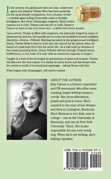 FBI Agent and playboy, Tristan Bleu is in deep. Undercover for the last eighteen months, his assignment has been handed down personally from the Director of National Intelligence. Meeting with his contacts in the darkness of a global and elite, members-only sex club, Tristan spends his time not chasing women, but the origins of a dangerous Shadow Broker—a double agent selling U.S. weapon security codes to Russian intelligence. When Champagne magnate, Renè Lebleu reaches out to him, Tristan puts his duties on hold for two days, flying to his birthplace in France to meet a man he’s never seen—a father he’s never known. Upon arrival Tristan is filled with suspicion, but his animosity, forged by years of abandonment and lies, is quickly put on notice by his father’s trusted confidant and bold personal assistant, Henriette—Henry—Tribolet. Meeting his match in the gorgeous and intelligent Henry, Tristan finds it hard to keep up his typical and indifferent air. But Henry Tribolet sees straight through Tristan’s steely indifference to the heart of the real man—a man with an enormous capacity to forgive. A would-be Champagne heir discovering true love for the first time. Caught in a web of lies, Tristan must defend his innocence from a malicious ploy crafted by enemies and insiders while chasing the threats of foreign adversaries across the globe. When Tristan discovers the true nature of the family he never knew, he’ll fall deeper into the perilous world of International espionage than ever before—taking Henry with him. What begins with Champagne and trust, will end in deceit and murder.