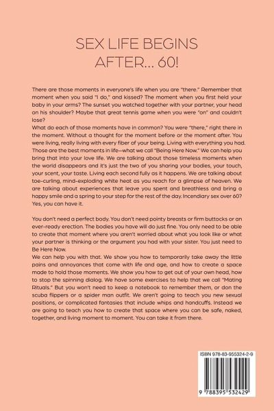 Really? Sex life begins after 60? Believe it or not, it’s true! There are those moments in everyone’s life when you are "there." Remember that moment when you said "I do," and kissed? The moment when you first held your baby in your arms? The sunset you watched together with your partner, your head on his shoulder? Maybe that great tennis game when you were "on" and couldn’t lose? What do each of those moments have in common? You were "there," right there in the moment. Without a thought for the moment before or the moment after. You were living, really living with every fiber of your being. Living with everything you had. Those are the best moments in life — what we call "Being Here Now." We can help you bring that into your love life. We are talking about those timeless moments when the world disappears and it’s just the two of you sharing your bodies, your touch, your scent, your taste. Living each second fully as it happens. We are talking about toe-curling, mind-exploding white heat as you reach for a glimpse of heaven. We are talking about experiences that leave you spent and breathless and bring a happy smile and a spring to your step for the rest of the day. Incendiary sex over 60? Yes, you can have it. You don’t need a perfect body. You don’t need pointy breasts or firm buttocks or an ever-ready erection. The bodies you have will do just fine. You only need to be able to create that moment where you aren’t worried about what you look like or what your partner is thinking or the argument you had with your sister. You just need to Be Here Now. We can help you with that. We show you how to temporarily take away the little pains and annoyances that come with life and age, and how to create a space made to hold those moments. We show you how to get out of your own head, how to stop the spinning dialog. We have some exercises to help that we call "Mating Rituals." But you won’t need to keep a notebook to remember them, or don the scuba flippers or a spider man outfit. We aren’t going to teach you new sexual positions, or complicated fantasies that include whips and handcuffs. Instead we are going to teach you how to create that space where you can be safe, naked, together, and living moment to moment. You can take it from there. What you will find in this book? first of all: will you still have an active sex life in your 60's why do so many women enjoy sex more when they are over 60 why having an active sex life into your 60's can benefit your overall health what are the natural ways to rejuvenate your sex life for those older than 60 tips for appreciating a healthy and balanced as well as thrilled lovemaking life in to your 60's why safe lovemaking is still a concern for those over 60 years of age common Issues to consider if you want to have a Great Sex Life after 60 how to deal with changes in your sexual relationship when you are 60 years old or older how to experiment with sex even if you are more than 60 years of age how to talk to your wife about sex ways to improve your intimacy with your wife and your husband …and more! Don’t wait. Buy our guide. Your fantastic sex life is beginning NOW!