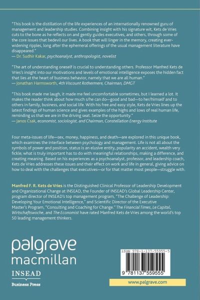 'This book is the distillation of the life experiences of an internationally renowned guru of management and leadership studies. Combining insight with his signature wit, Kets de Vries cuts to the bone as he reflects on and gently guides executives, and others, through some of the core issues that bedevil our lives. A book that will linger in memory, creating ever-widening ripples, long after the ephemeral offerings of the usual management literature have disappeared.' - Dr. Sudhir Kakar, Psychoanalyst, Anthropologist, Novelist and one of the major thinkers of the world